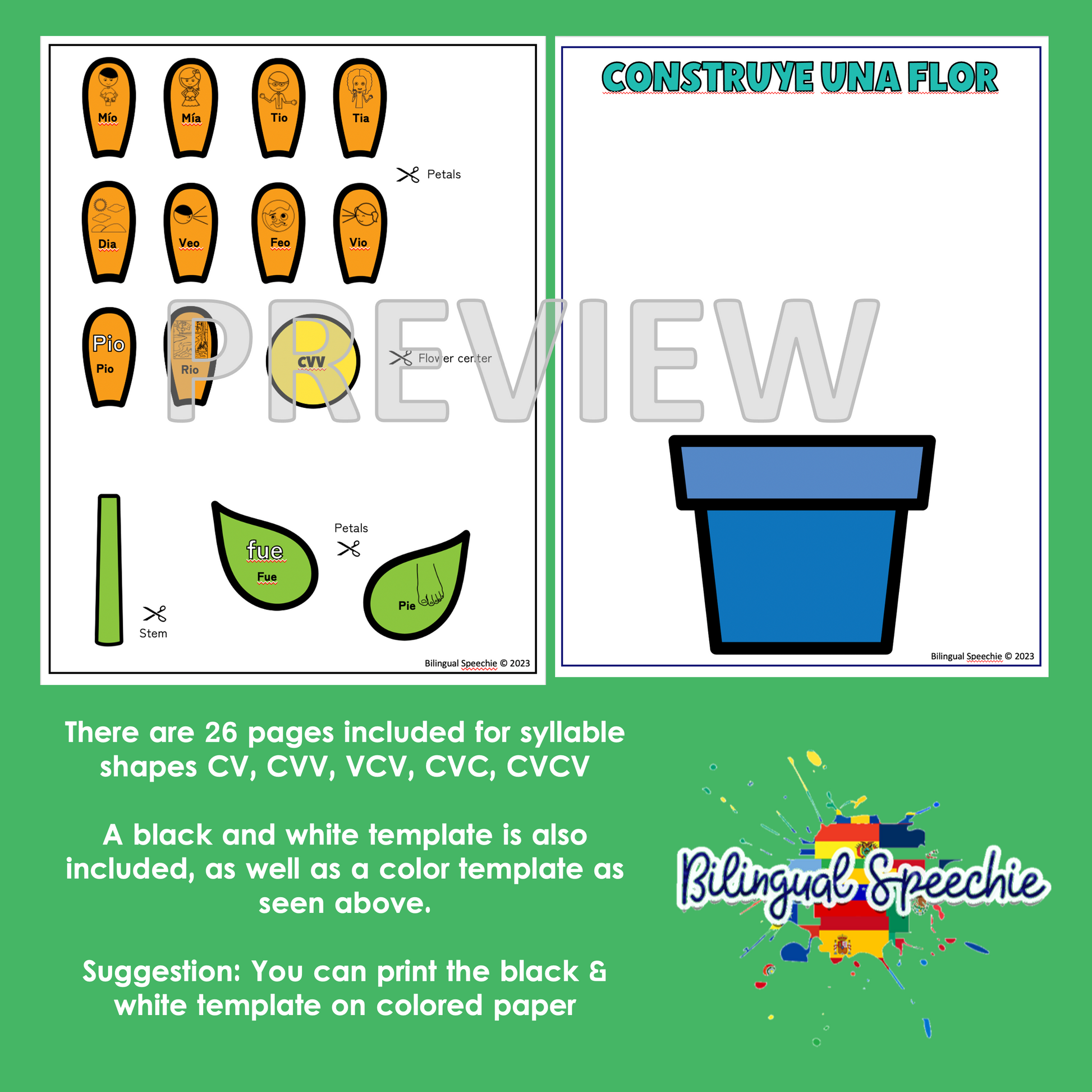 Jump into spring with this cute craftivity! This fun craft will provide your student with multiple opportunities to practice their syllable structures. This activity comes in Spanish and includes the following syllable shapes in words: CV, CVV, VCV, CVC, CVCV. It can also be sent home for homework.