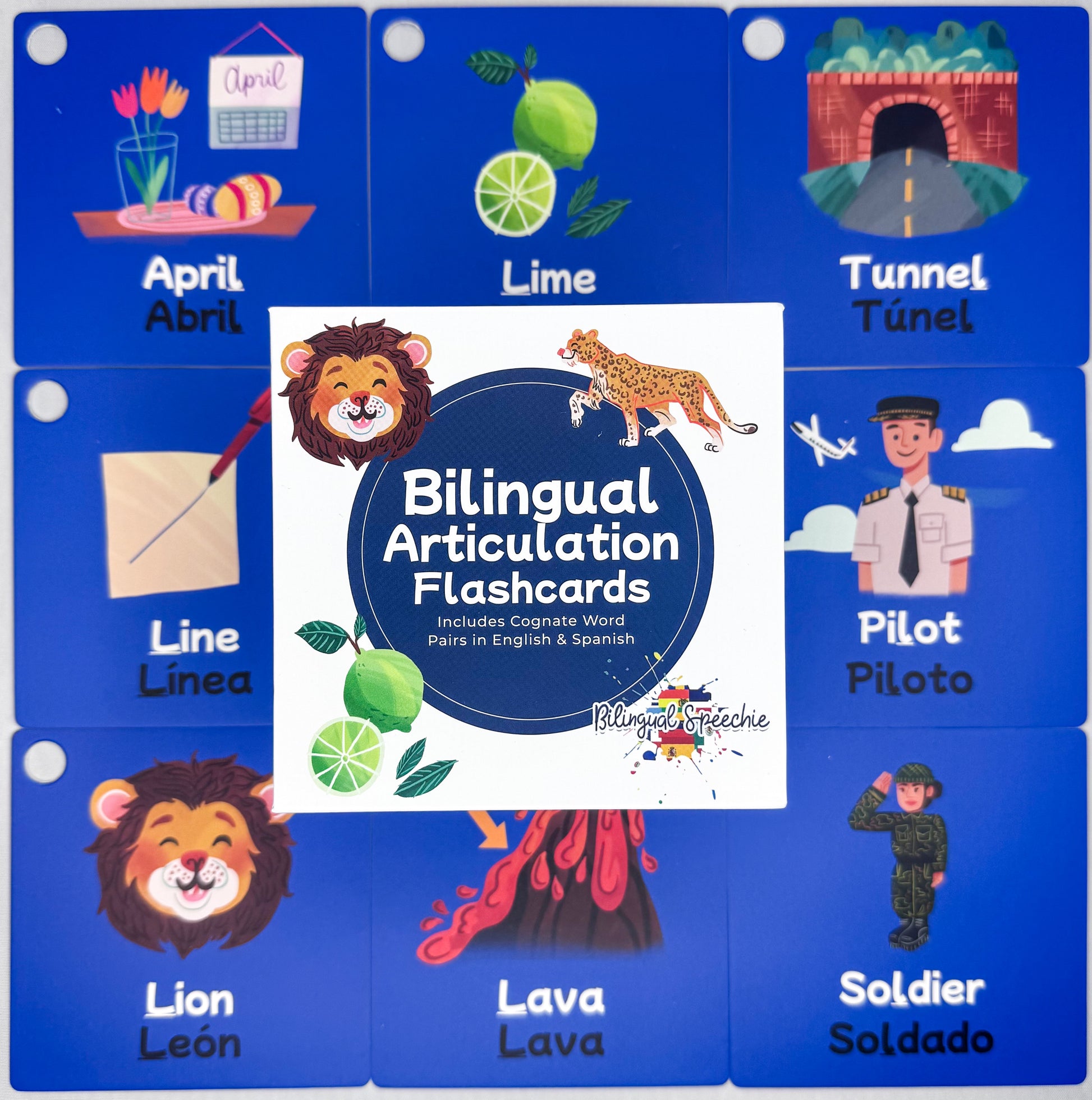 These unique bilingual flashcards utilize cognate words as the main targets on each card & also supports evidence-based research on the use of cognate words with bilingual speakers. Cognate words are defined as having the same linguistic derivation as another.